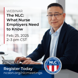 Our free webinar for nurse employers on Feb. 25, from 2-3 pm CST, provides an overview of the NLC, answers questions nurse employers have, explains the 60-day residency rule, provides an implementation update and explains Nursys.com and Nursys e-Notify. The webinar is being facilitated by NLC Associate Lisa Sands. NLC Director Jim Puente will serve as the presenter. https://www.nursecompact.com/stay-informed.page #NurseCompactNation